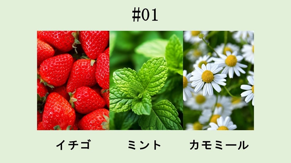甘いイチゴの香りとミントの爽やかなハーブ感。ミントを加えると、よりフレッシュで爽やかな香りに。イチゴ、ブルーベリーを加えることで、ジンの香りに果実のフレッシュな味わいをプラスしています。