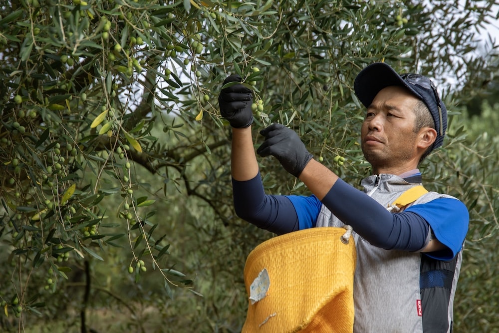 一粒ずつ丁寧に手摘みで収穫するオリーブ