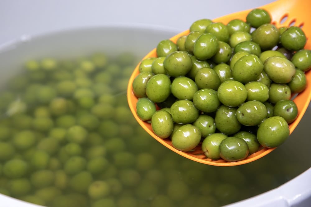 ※オリーブ果実には渋みが含まれています。高い抗酸化作用を持つオレウロペインというポリフェノールの一種です。渋抜き加⼯の際に発⽣する排⽔は、適切な処理を施してから放流しています。