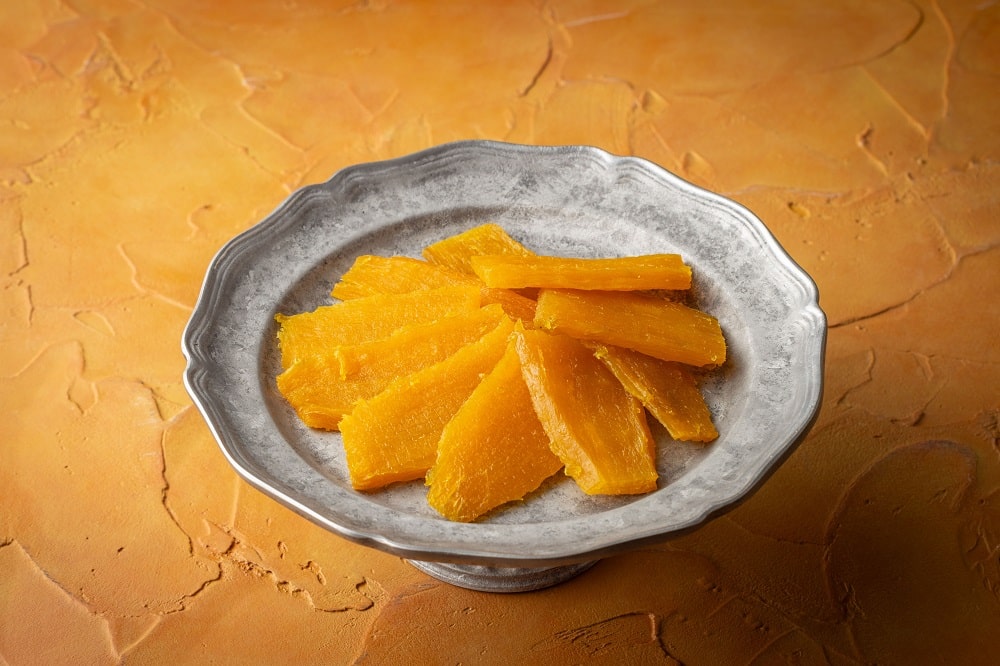 収穫後90日以上の自家熟成を経て、さつまいもからわずか9%しか取れない希少な部分のみを贅沢に使用。原材料表示は「さつまいも」のみ。健康志向の高まりとともに、60%以上の消費者が「無添加」「不使用」表示を参考に食品を購入している中、添加物を一切使用せず、素材本来の驚くべき甘さと、とろとろ食感を実現しました。