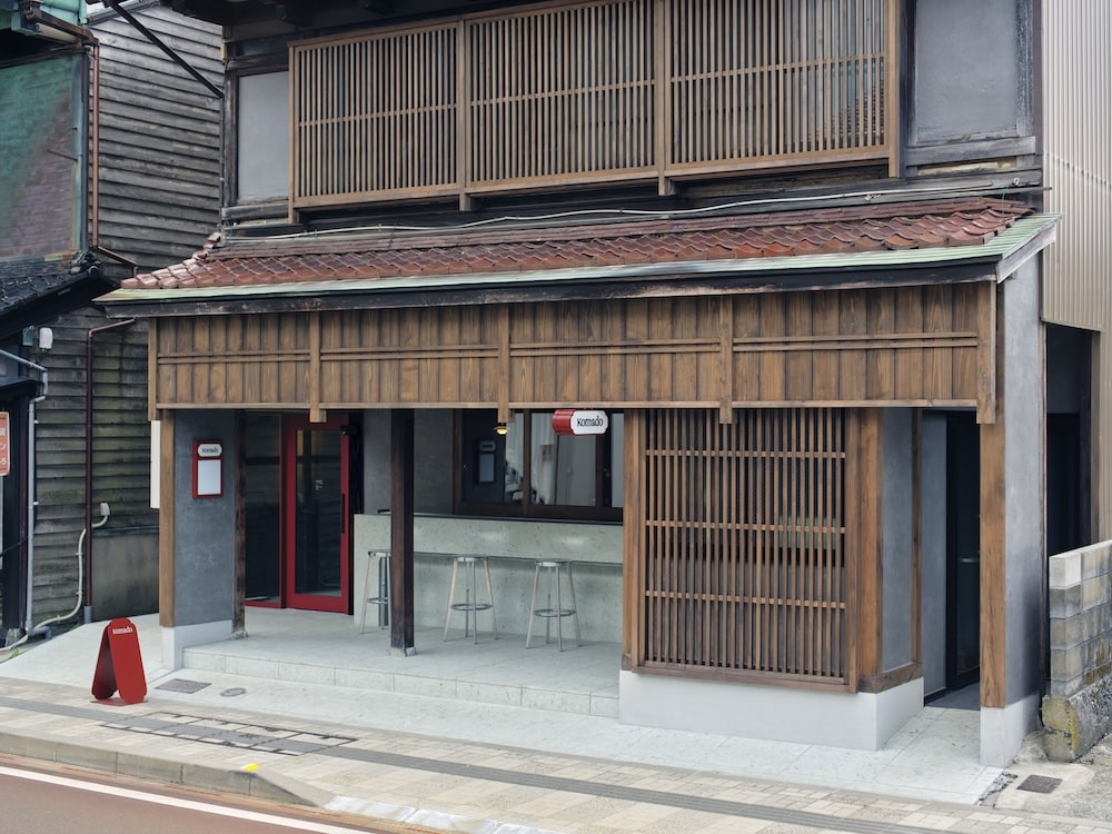 北陸新幹線の延伸で注目が集まる石川県・小松市。九谷焼や加賀棒茶に象徴されるように、この町には工芸やものづくりの美意識が日常に根づいています。町家もまた、長く暮らしを支えてきた小松の日常の資源のひとつですが、近年は老朽化や後継者不足などによってその姿が失われつつあります。そんな中、その日常を未来へ受け渡すかたちとして、分散型ホテルブランド「Komado」は生まれました。第一号店「Komado ベンガラ」は、町家を改修した3室の客室に加え、カフェやショップも併設。ゲストが空間や工芸を通して町家の暮らしに触れながら滞在できる場所となっています。