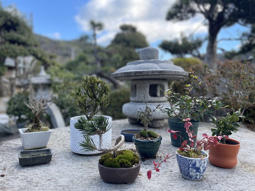 すりガラスを透明のガラスに入れ替えたギャラリーからは、日本庭園を臨めるようになりました。また、日本庭園には盆栽を楽しめるように配置しました。高松市は全国の松盆栽のシェア約8割を占める一大産地であり、海外でも「BONSAI」として人気が高まっています。盆栽を気に入ればその場で購入することも可能です。
