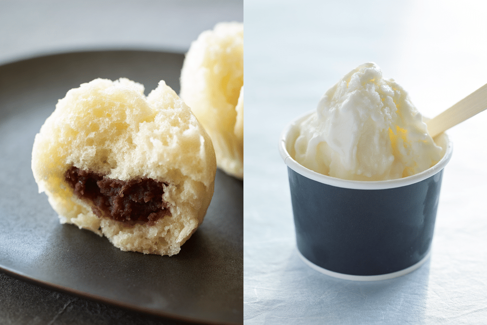 酒造りの過程でできる酒粕を使った「宗像 花酒(はなさか)まんじゅう」や、宗像の素材を使ったジェラートなどをテイクアウトすることができます。