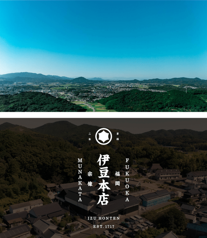 伊豆本店は1717年に創業し、宗像の地で300年以上にわたり酒造りを続けてきた老舗酒蔵です。歴史的な茅葺きの建屋や煉瓦造りの煙突を残しながら、今回の改築では、“魅せる酒蔵”をコンセプトに「直売所」「醸造蔵」「酒蔵BAR」「甘味」「歴史展示」の5つの体験エリアを新設。酒造りの工程を間近で見学できる醸造蔵、日本酒とそのペアリングを楽しめる酒蔵BAR、「宗像」や「亀の尾」等を購入できる直売所、酒づくりの道具などを展示した歴史展示、酒粕を使った「宗像 花酒(はなさか)まんじゅう」や宗像ジェラートをテイクアウトで提供する甘味処など、日本酒文化と地域の魅力を五感で味わえる施設としてリニューアルされました。