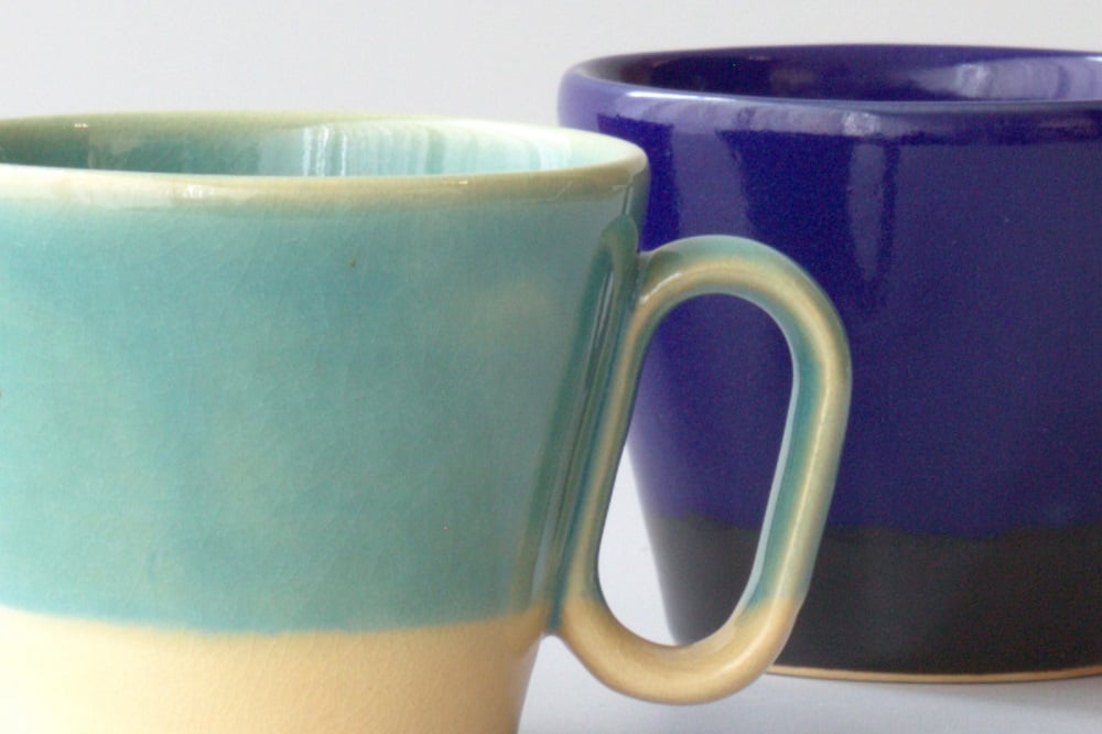 本製品は、白薩摩と黒薩摩を下地に、釉薬を重ねたバイカラーが特徴です。うるみ釉 黒薩摩、瑠璃釉 黒薩摩、伊羅保釉 白薩摩、トルコ釉 白薩摩の4種を展開。顔料の配合や窯の温度を調整しながら、釉薬が美しく留まる表情を追求しました。薩摩焼の伝統と、釉薬の達人ならではの技が融合した、日々の一杯に、静かな存在感と深い味わいを添える一品です。