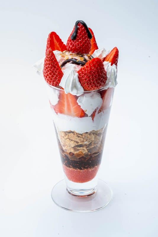 完熟いちごを贅沢にのせたいちごシェイク。どこを食べてもいちごを感じることができる、いちご好きにはたまらない逸品です。